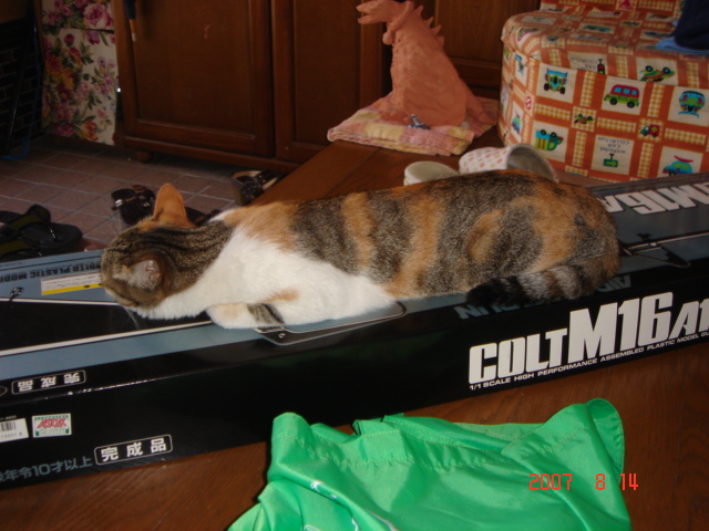 (*´Д`*)エアガンの上に乗っちゃって・・・