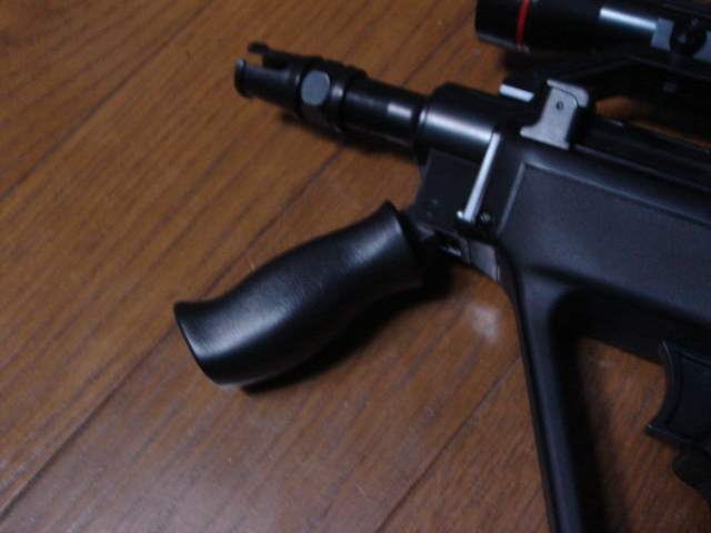 肩付け射撃などは出来ませんが、フォアグリップ付きで、安定感は中々