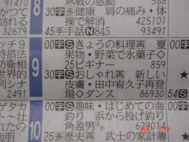 夜の9時に「きょうの料理」をやるというのはどうかと